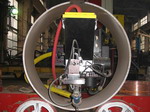 - Сварочная колонна Scarab 12x12, 4 х 4м с приводным основанием по направляющим рельсам. - Система автоматической осцилляции вдоль разделки. - Комплект для сварки расщепленной дугой. - Комплект автоматической сварочной головки NA5 в комплекте с источником тока DC 1000. - Система рециркуляции флюса SPS3000 + MS1. - Самоцентрирующиеся роликовые опоры PSR15/30 DM, грузоподъемностью - Комплекс слежения по стыку: приводные суппорта, тактильный щуп, видео наблюдение. |