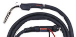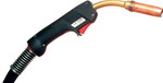 Сварочная горелка пушпульного типа с воздушным охлаждением, подвод кабеля к держаку и коннектору защищен стальной пружиной. Поставляются с евро разъемом для подключения к разъемами американских стандартов требуется адаптер. Поток защитного газа min 12 л/мин.