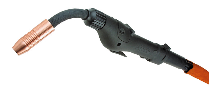 Удобная сварочная горелка с воздушным охлаждением, подвод кабеля к держаку и конектору защищен стальной пружиной. Выпускается: с не фиксируемой кнопкой, с фиксируемой кнопкой, с двух позиционным переключателем запомненных режимов (маркер DP), и укороченным гуснеком. Поставляются с евро разъемом (маркер FM) и разъемами американских стандартов или переходниками к подающим других производителей.